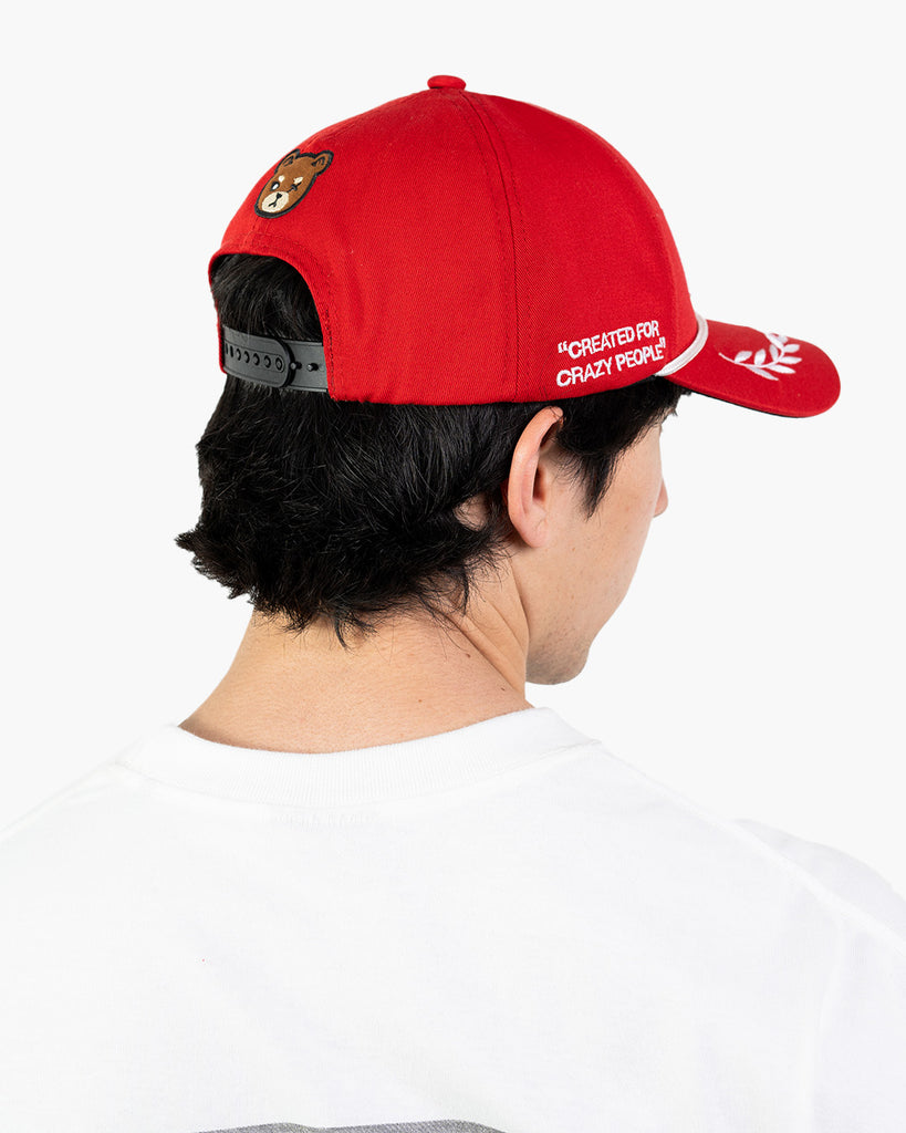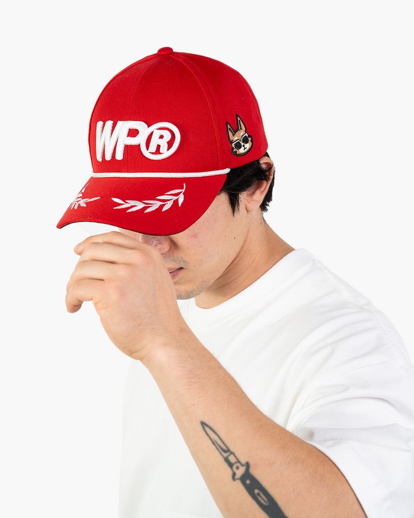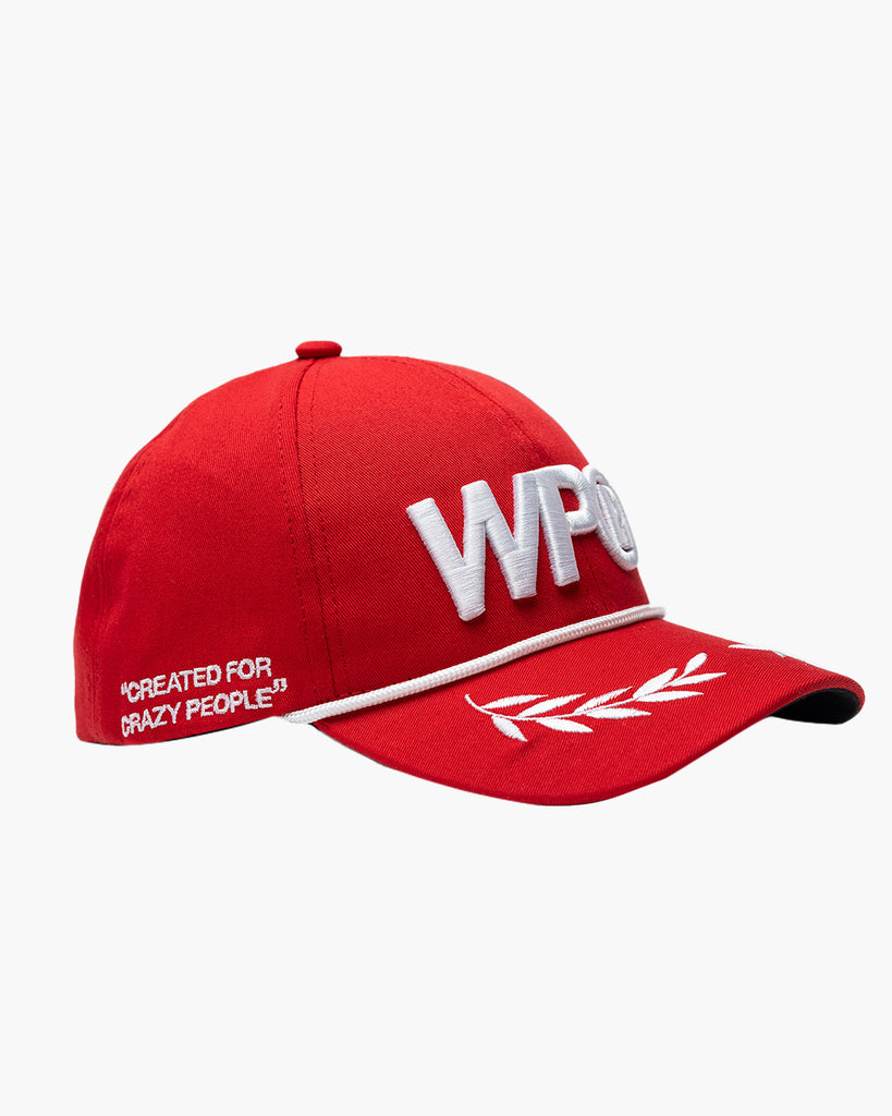 La gorra Red Laurel Cap destaca por el nombre y logotipo de William Project bordados en los paneles frontales, acompañados de un detalle de laurel. Incluye también personajes bordados en la parte trasera y acabados esenciales que elevan su diseño. ¡Hazla tuya hoy!